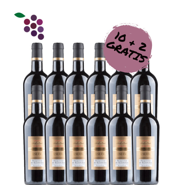Conte di Campiano Primitivo Riserva is een volle, krachtige rode wijn uit Puglia met tonen van rijp rood fruit, vanille en specerijen. Perfect bij gegrild vlees en kazen. De ideale serveertemperatuur voor Conte di Campiano Primitivo Riserva is 18°C. Lees meer.